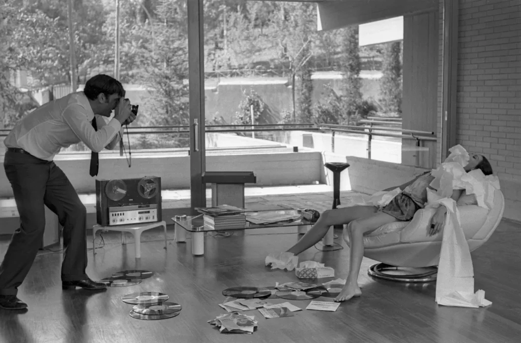 In the film directed by Elio Petri and starring Gian Maria Volonté and Florinda Bolkan, it’s impossible not to be struck by the setting. The interiors, where much of the story unfolds, are those of Berarducci’s own home, characterized by concrete partition walls and parapets sometimes painted white.