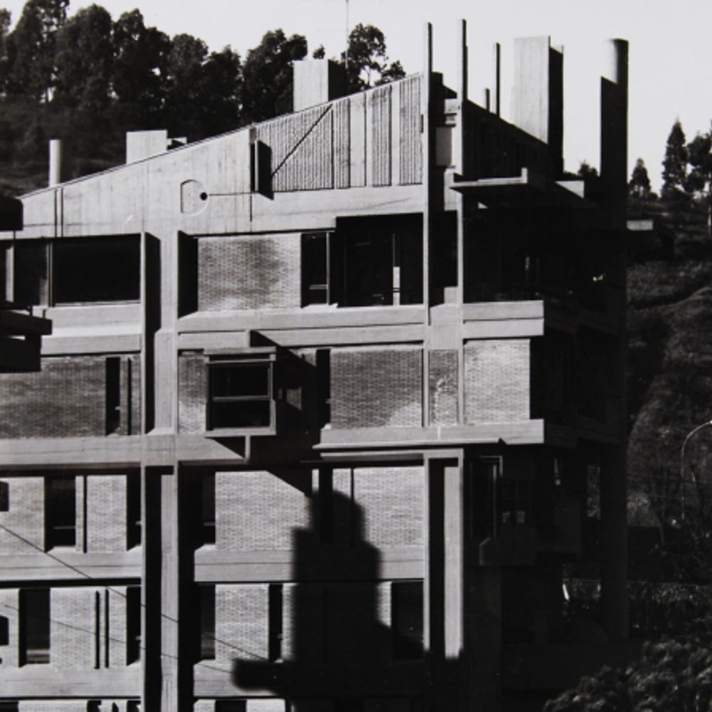 The exposed reinforced concrete architectural structure, typical of the Brutalist style, is the dominant element and helps to accentuate the dramatic sense of the narrative.