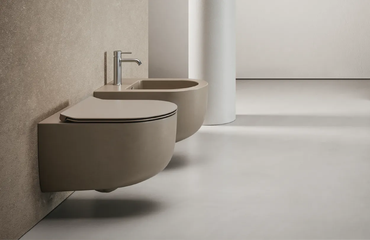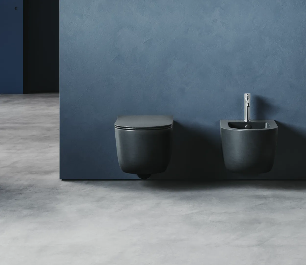 Clean and sober wc available in different color and finishes, with wrap soft close. It is available both wall hung or floor mounted.