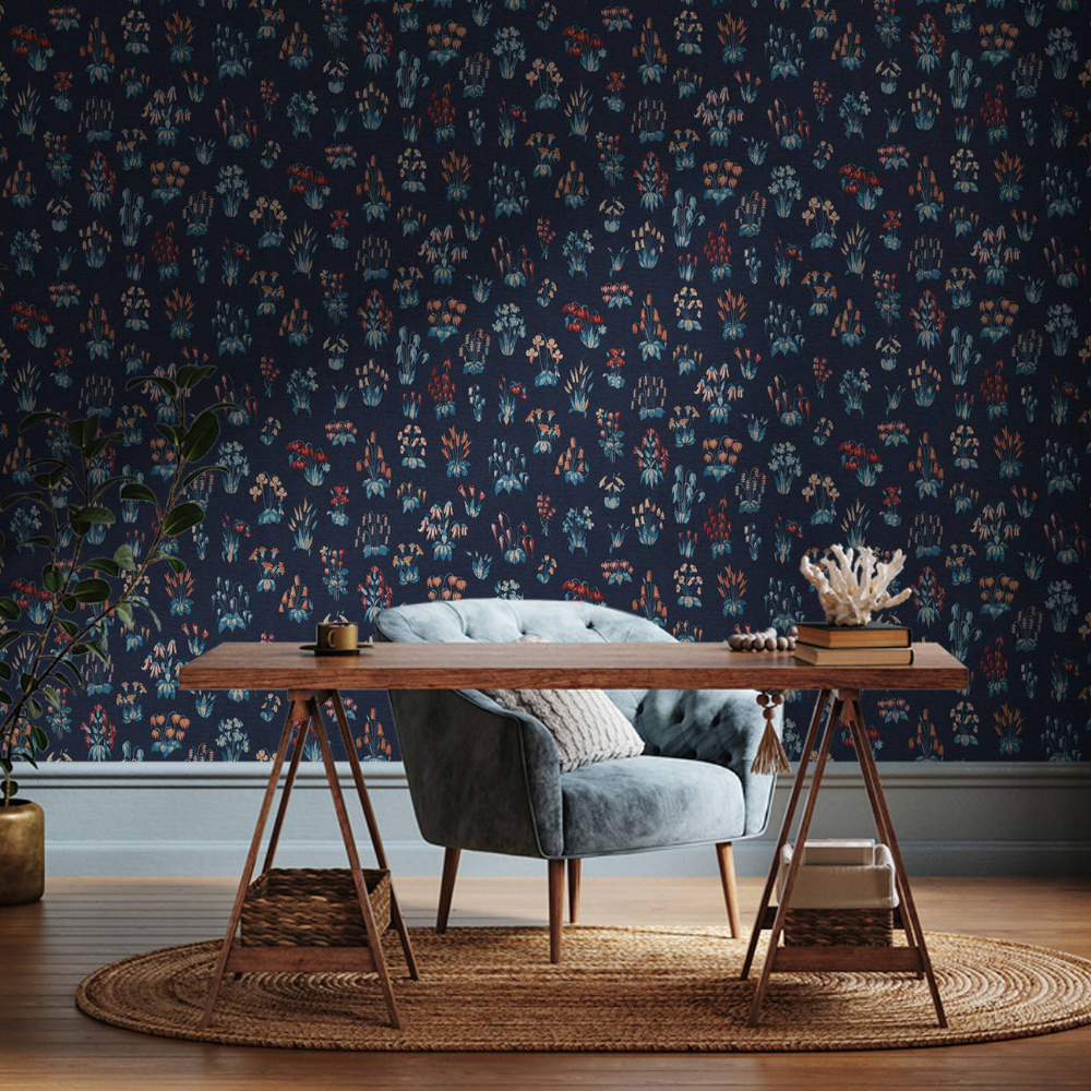 Inspired by a rare 15th-century tapestry at Montacute House, this Millefleur design features hundreds of tiny flowers on a dark ground, reflecting medieval craftsmanship and historic European textile artistry.