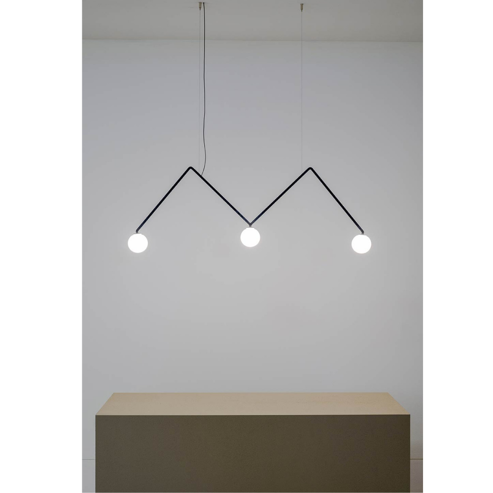Aluminium pendant lamp with three light sources, offering spotlight, opal glass, or metal cone diffusers for versatile, elegant illumination.