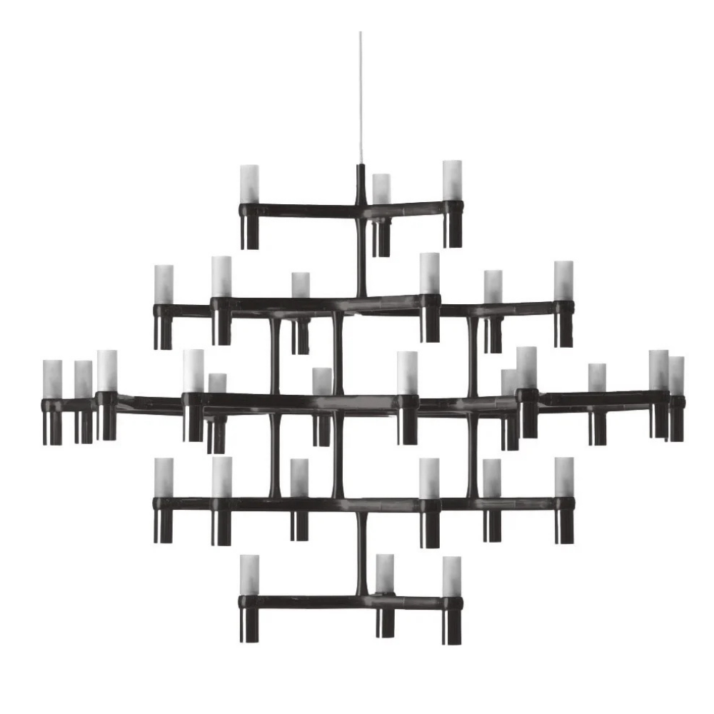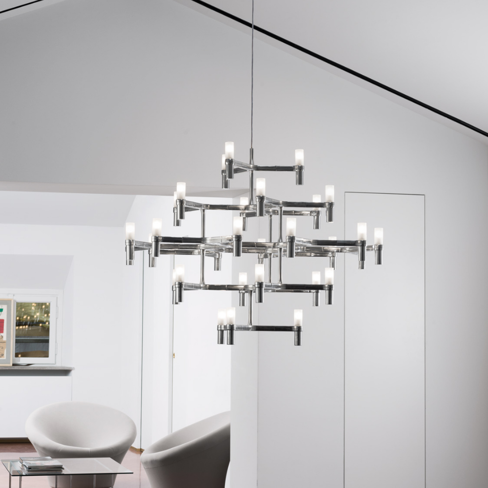 Crown is a contemporary design icon inspired by classic chandeliers and snowflake forms, featuring a modular structure that allows endless combinations of colors and sizes, delivering versatility and striking visual impact.