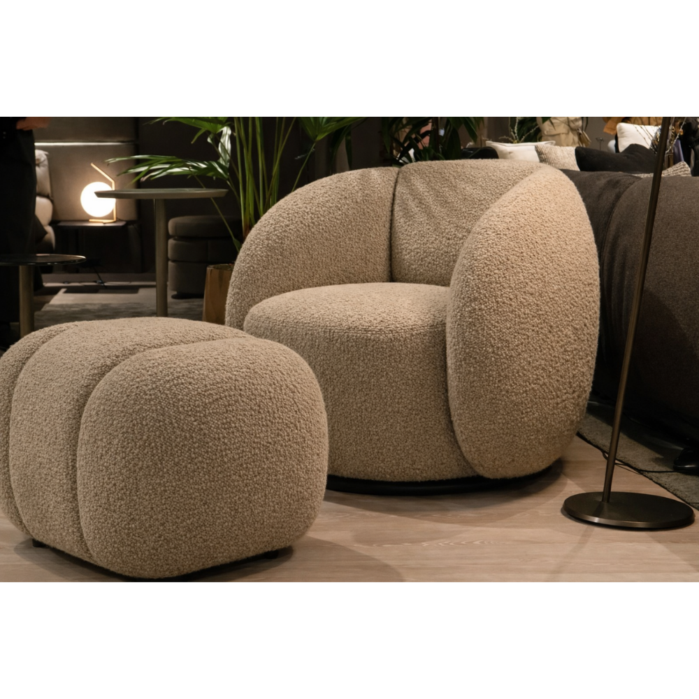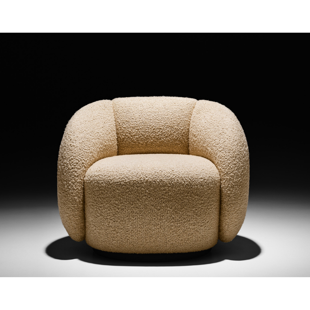 Brioche armchair by Beatriz Sempere for Twils blends playful design with luxurious comfort, inspired by soft, golden pastry forms. This stylish seating piece adds bold character, retro charm, and cozy elegance to modern interiors.