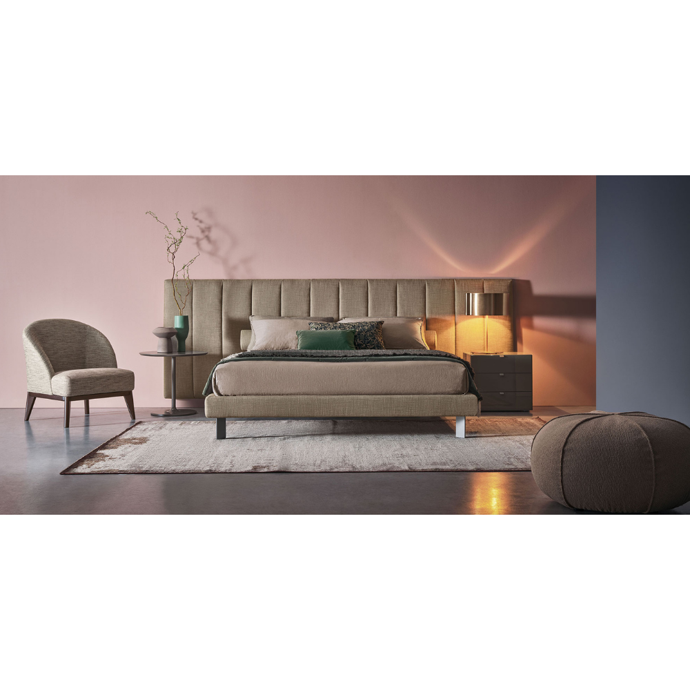 Boiserie Oscar wall headboard features soft upholstered design with vertical stitching for a clean, rhythmic pattern. Customizable finishes pair seamlessly with various bed bases, enhancing elegance and personalized interior style.