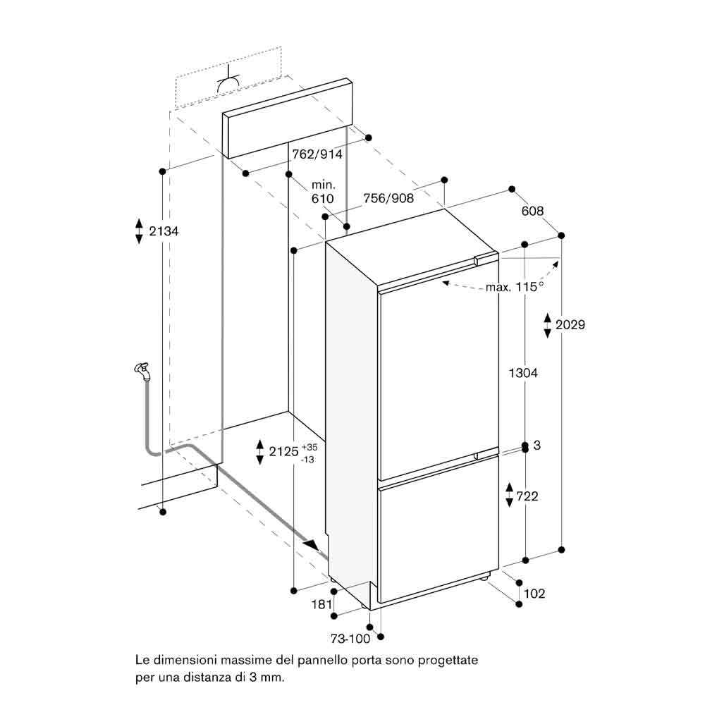 The Gaggenau RB492305 is a built‑in fridge‑freezer from the 400 Series with No‑Frost technology and a total capacity of approximately 555 litres. It features illuminated fresh cooling drawers with adjustable temperature and humidity, a freezer compartment capable of quick freezing down to ‑30 °C, and an integrated ice maker with fixed water connection.