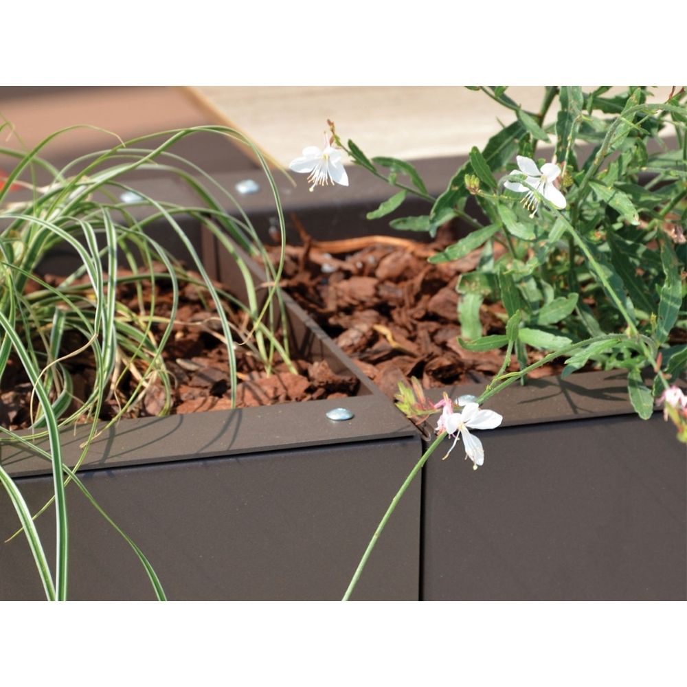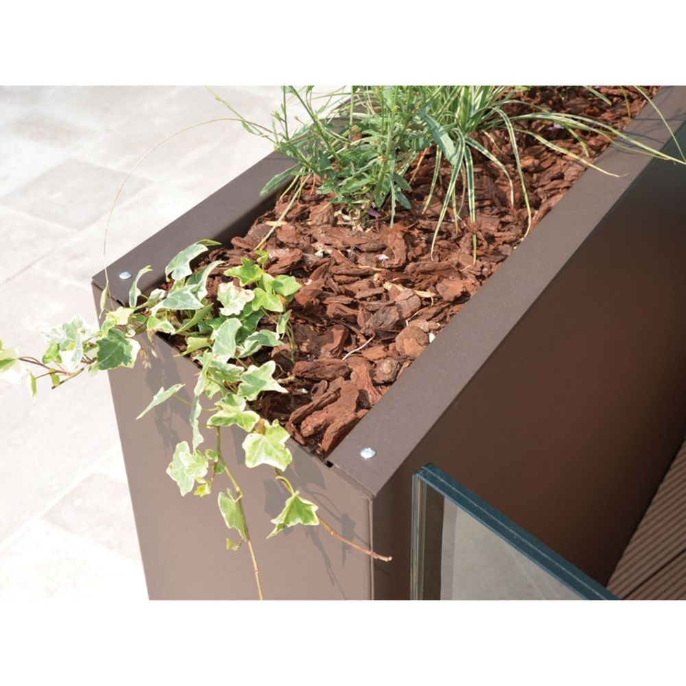 Designed for modern urban spaces, this innovative enclosure features multi-level laminated glass parapets, recessed bar-mounted fastenings, and optional aluminum planters, offering stylish, flexible protection with integrated decorative elements.