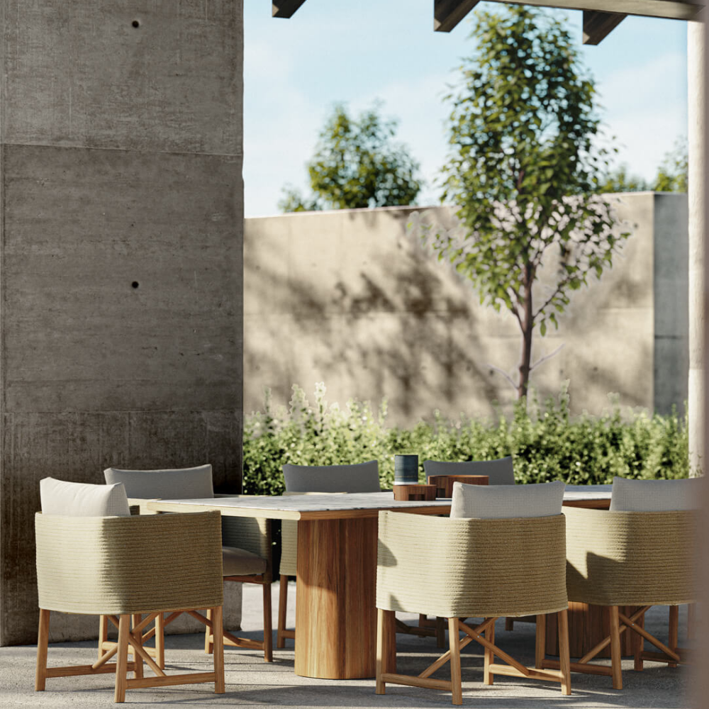 Giro collection combines pure lines and rich textures, harmoniously uniting indoor and outdoor spaces with warmth, tactility, and elegance.