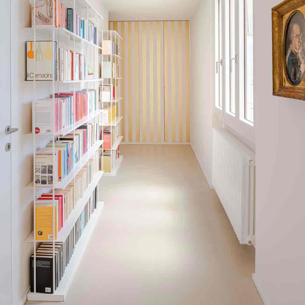 Krossing Maxi is the enhanced version of the Krossing wall shelving system, designed for those who require a more substantial presence and increased load capacity. While maintaining the original system’s slim, minimal aesthetic, Krossing Maxi uses reinforced aluminum shelves and components to support heavier loads, while preserving visual lightness and compositional flexibility. Ideal for large living areas, contract spaces, or environments where larger objects, books or design pieces need to be displayed, it integrates seamlessly into contemporary and bespoke interiors.