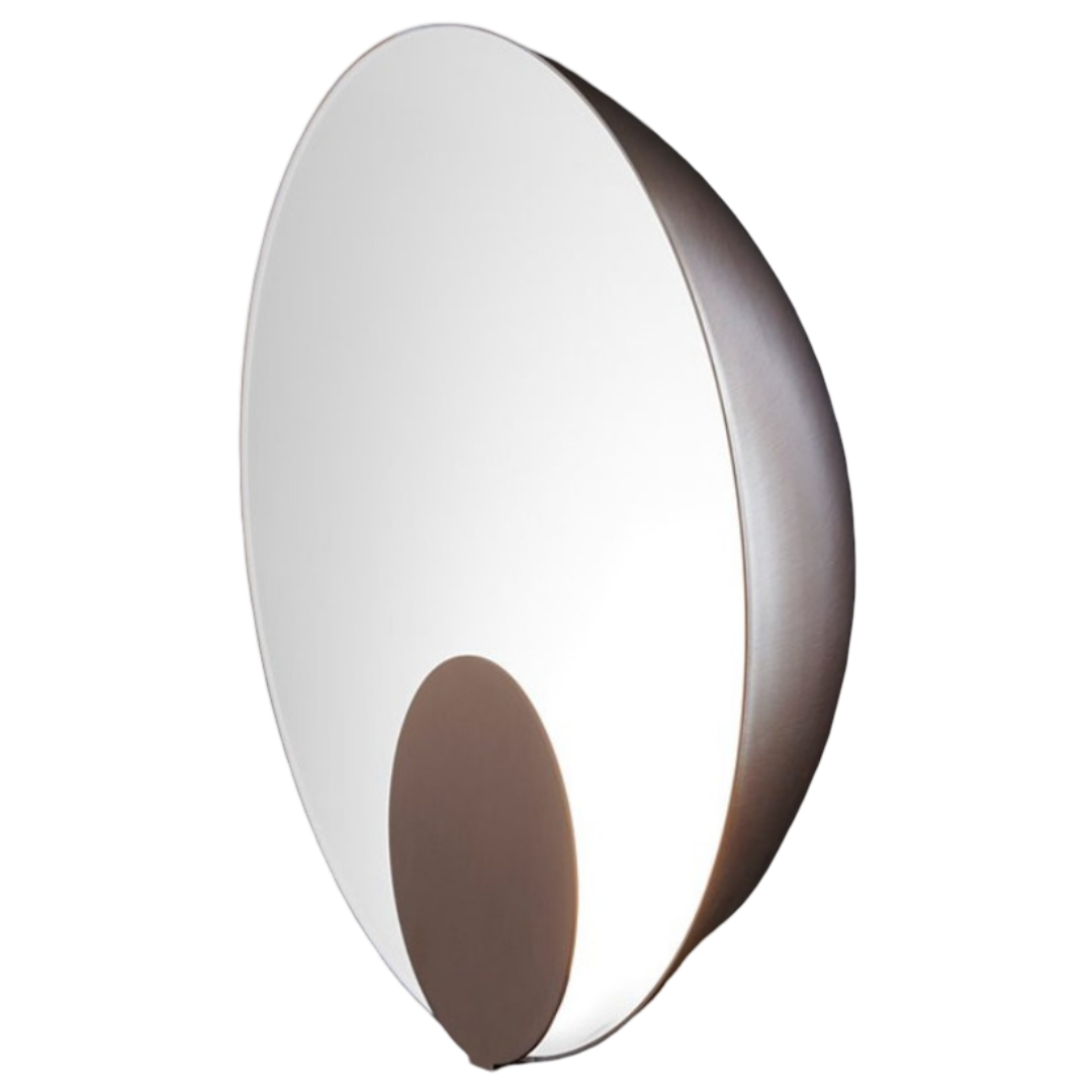 Siro Table Lamp – A minimalist LED lamp featuring a lens and front disk, offering grazing light. Available in satin bronze or gold, inspired by the star Sirius.