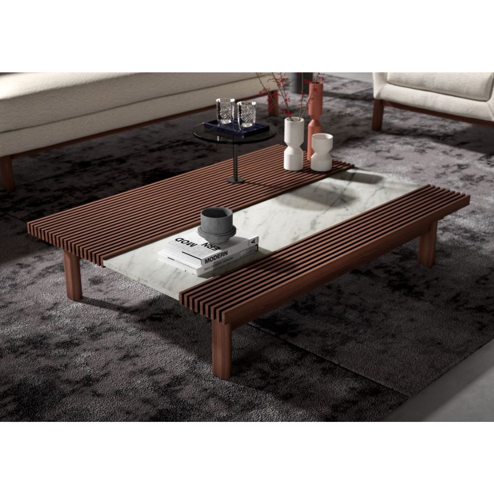 The Feel modular sofa features raised, geometrically precise design with slatted wood end pieces, offering continuity between surfaces. Meticulous detailing enhances comfort and style, ideal for modern, versatile living spaces.