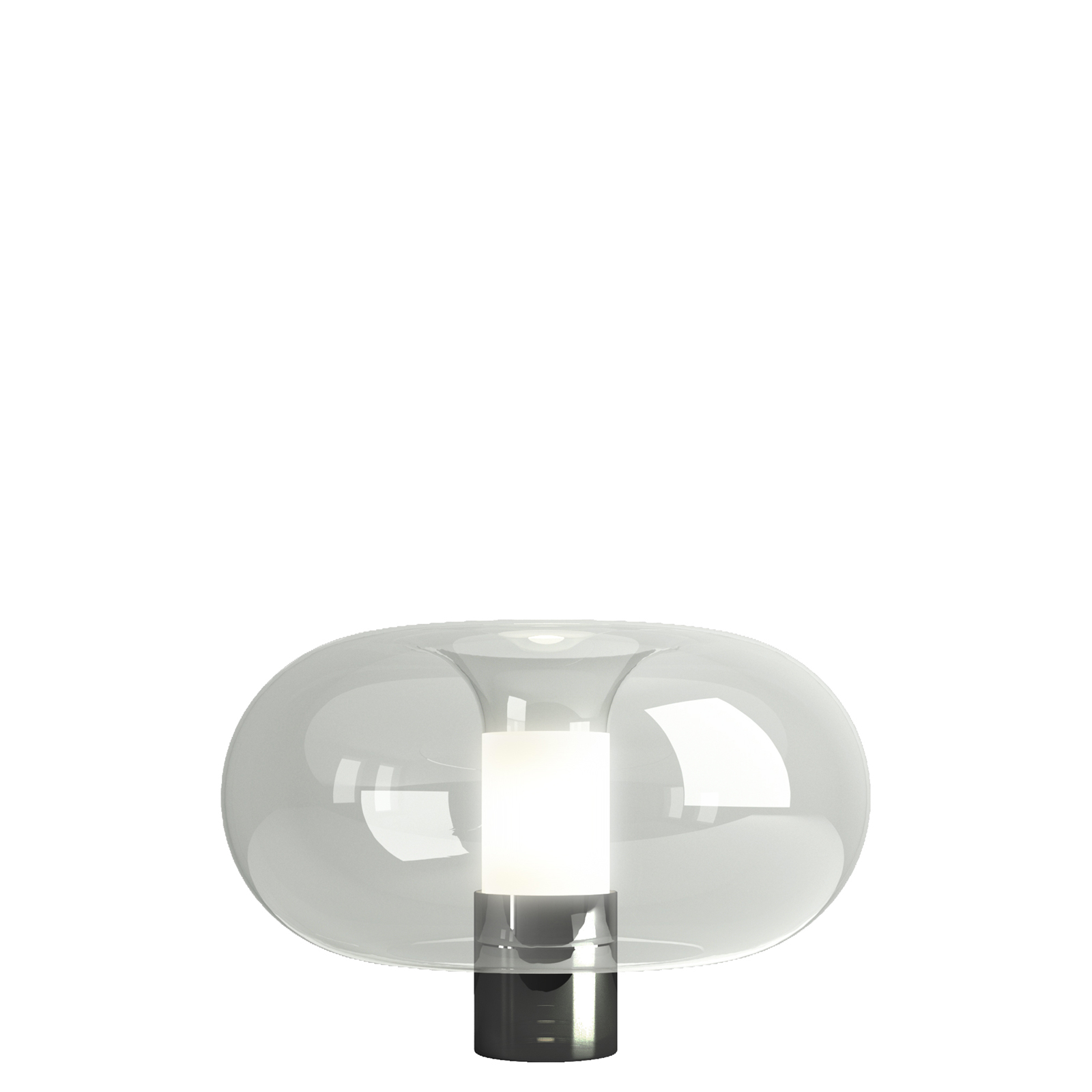 The Fontanella lamp by FontanaArte, designed by Federico Peri in 2020, blends Italian glass-blowing tradition with contemporary design. Its hand-crafted borosilicate glass diffuser combines transparent and satin finishes to produce a soft, diffused glow that enhances interiors with elegant, ambient illumination.