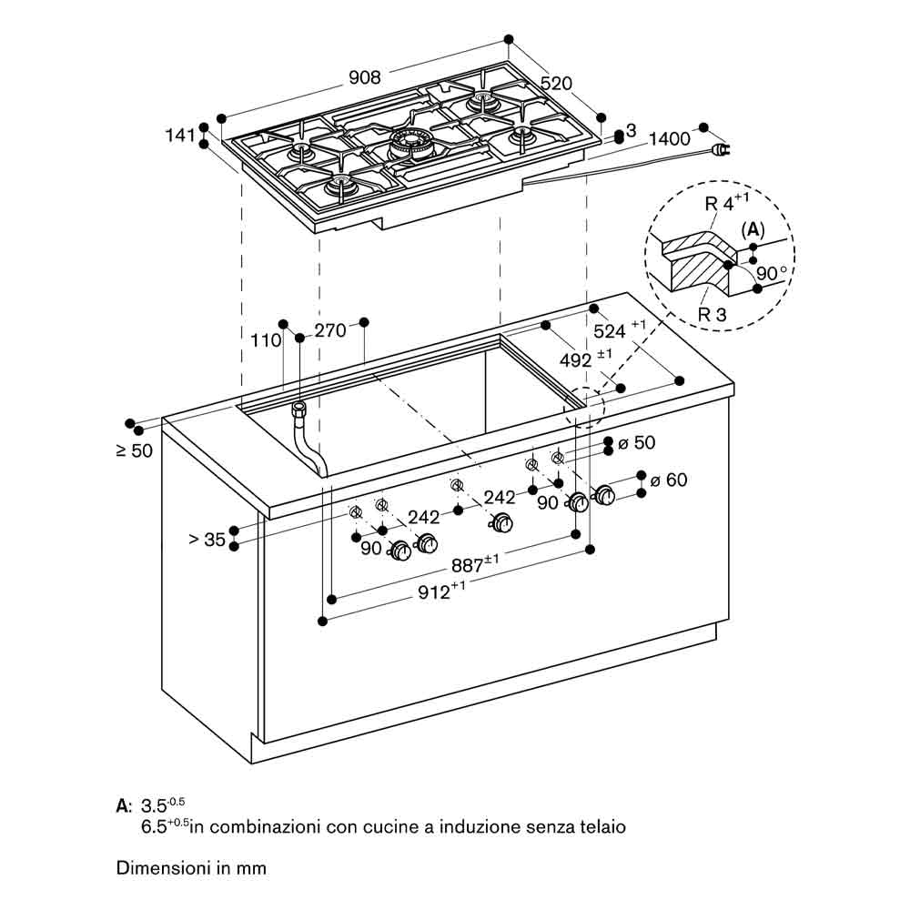 Gaggenau piano cottura a gas VG491115