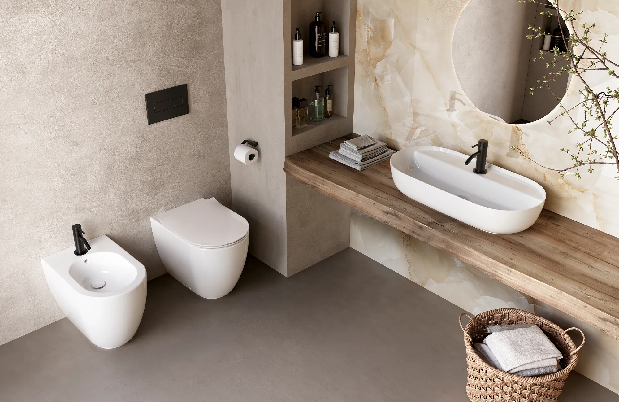 Sobrio e pulito, disponibile in due finiture. Con sedile frenato, è ordinabile in misura standard e ridotta.