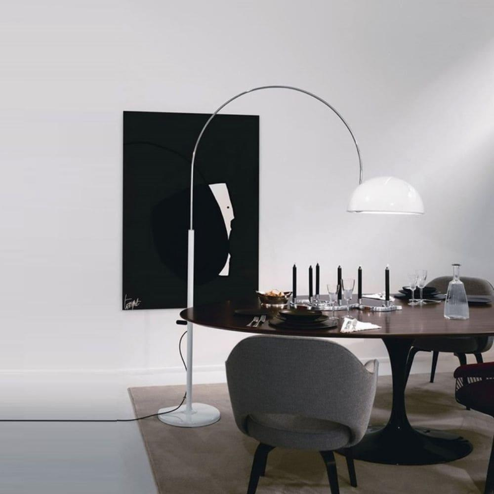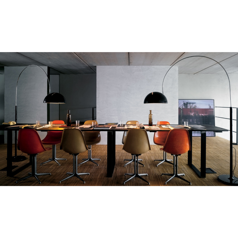 La lampada Coupé di Oluce, un design pluripremiato dal 1968, è caratterizzata da un fascio luminoso orientabile con paralumi semicilindrici o semisferici, disponibili nei modelli da tavolo, da terra e da parete.
