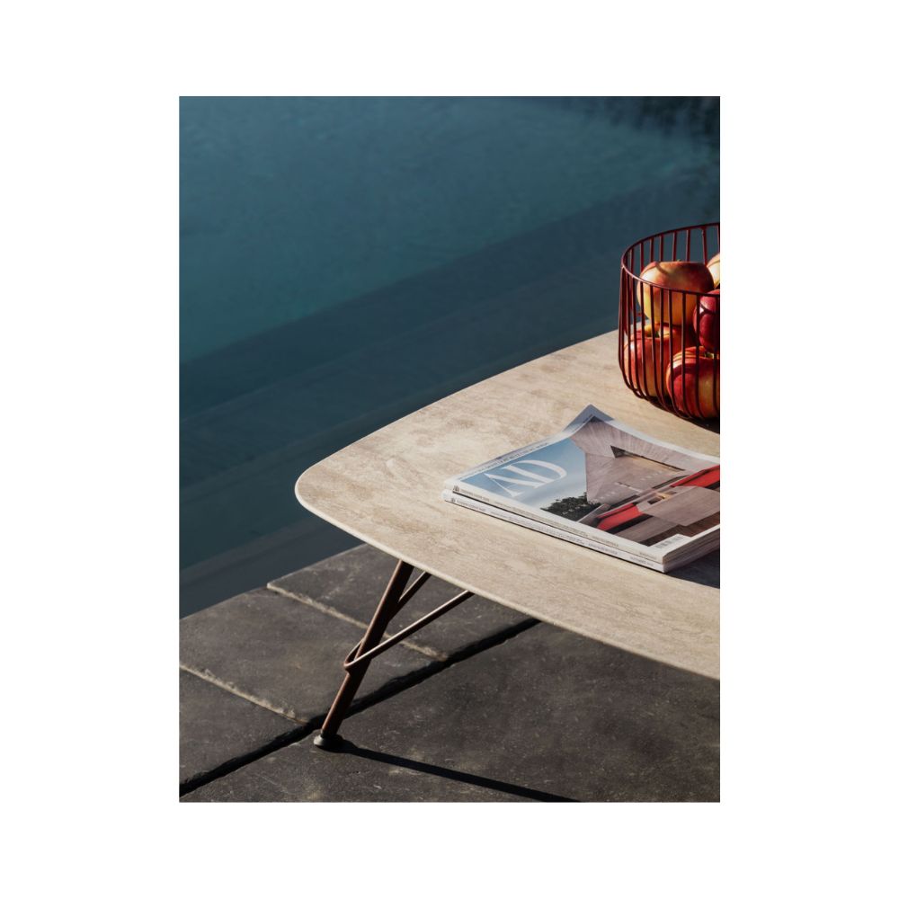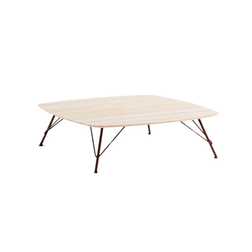Il tavolino Bolle si distingue per la sua scultorea base a tre gambe in metallo verniciato e per la possibilità di scegliere tra piani quadrati in HPL, metallo o pregiato marmo. Progettate per garantire versatilità e durata, le versioni con piano in HPL o metallo sono perfette per l’uso esterno. È disponibile anche una versione con piano rotondo (ø60 cm), che aggiunge ulteriore varietà a questa elegante collezione.
