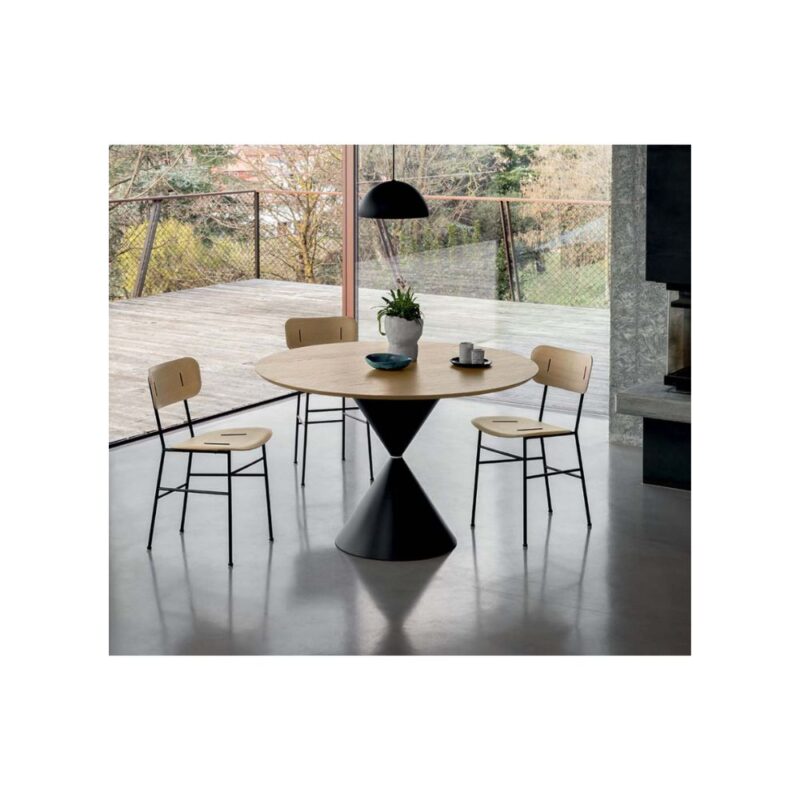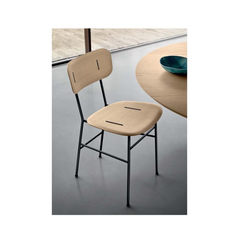 La sedia Piuma presenta una base in metallo minimalista a quattro gambe, abbinata a una seduta e uno schienale finemente lavorati in frassino, noce o rovere impiallacciato. Inserti in metallo sapientemente esposti e dadi a farfalla neri aggiungono un audace accento industriale, armonizzandosi con la struttura per un look raffinato ma al tempo stesso audace. Ideale per sale da pranzo moderne, uffici di design o ambienti di ospitalità di lusso.